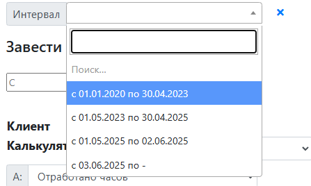 Новый интервал станет 01.02.2020 – н.в. - Активный интервал отображается в поле "Интервал", и расчеты выполняются по его настройкам.