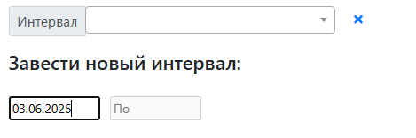 Если в поле "Интервал" уже выбран период, нажмите в блоке "Завести новый интервал", поле "С" введите новый интервал в формате ДД.ММ.ГГГГ, чтобы создать новый.