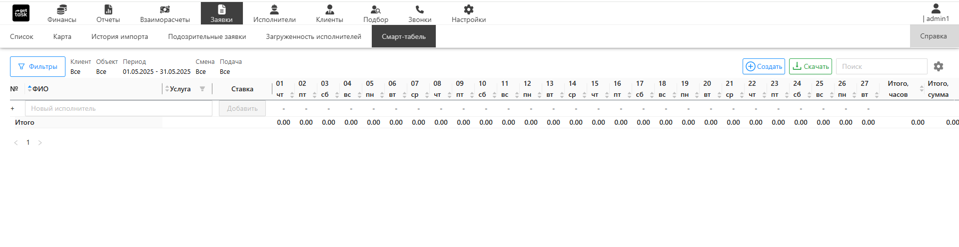 Зачем это: Фильтры в Смарт-табеле помогают выбрать нужного клиента, объект и период, чтобы видеть только подходящие заявки.
