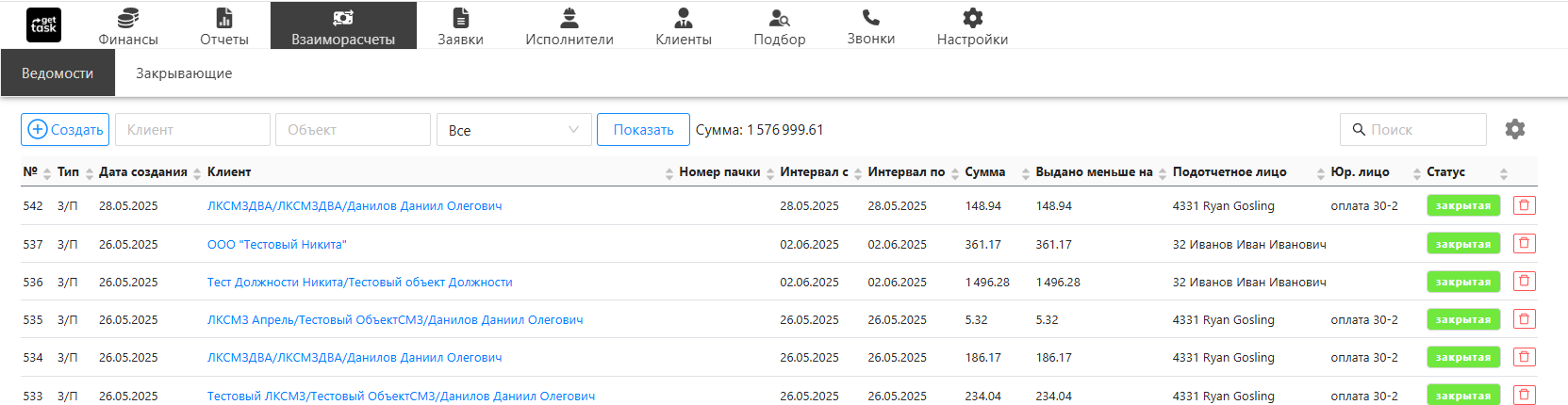Ведомость в системе GetTask — это инструмент для расчета и начисления вознаграждения исполнителям за выполненные заявки.