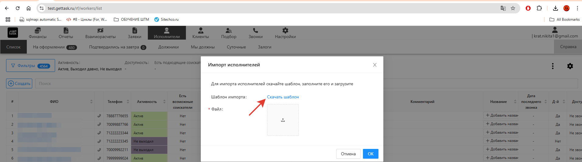 Данный способ подходит если у вас например, есть все исполнители в таблице Excel или Google-таблицах.